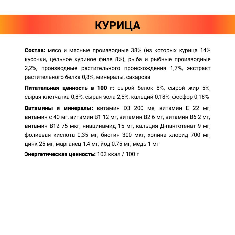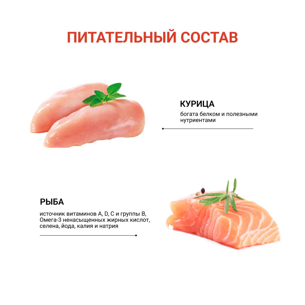 - В составе рациона более 38% мясных ингредиентов.