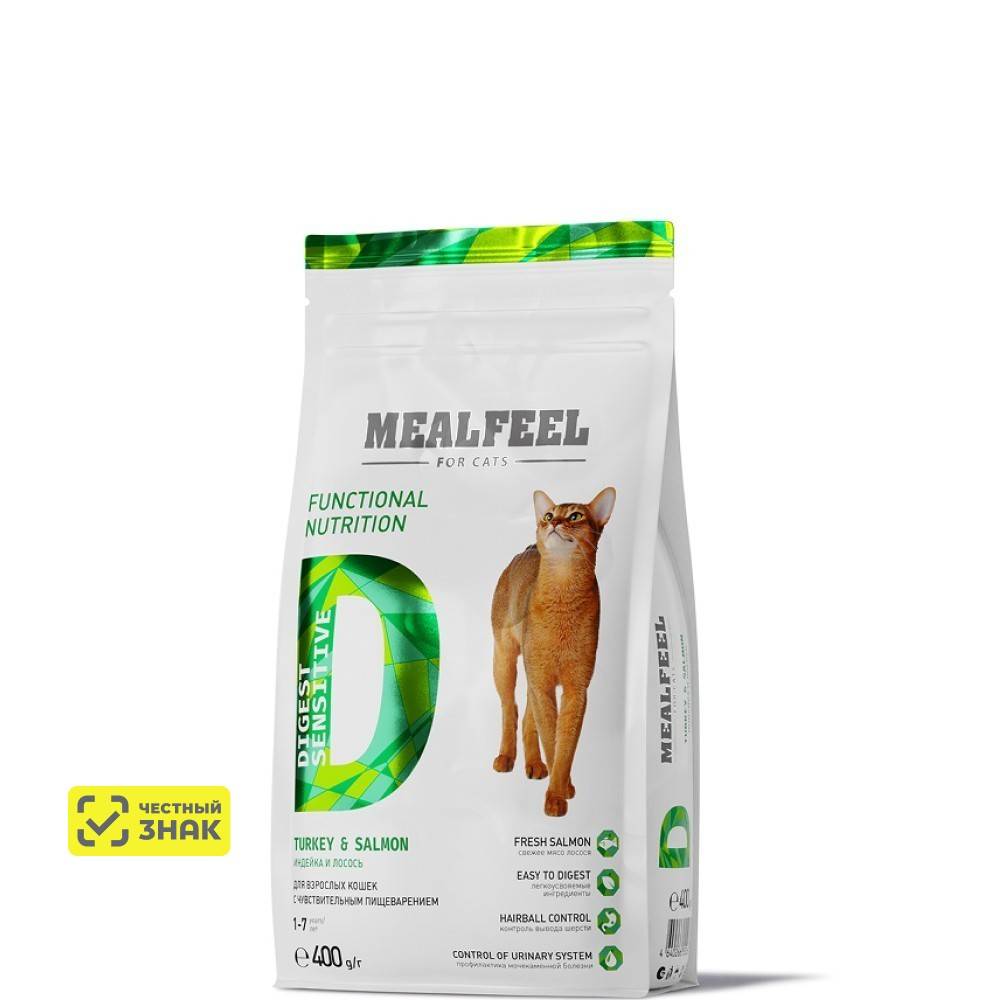 MEALFEEL DIGEST SENSITIVE – сухой рацион на основе свежего мяса, разработанный специально для кошек с чувствительным пищеварением.