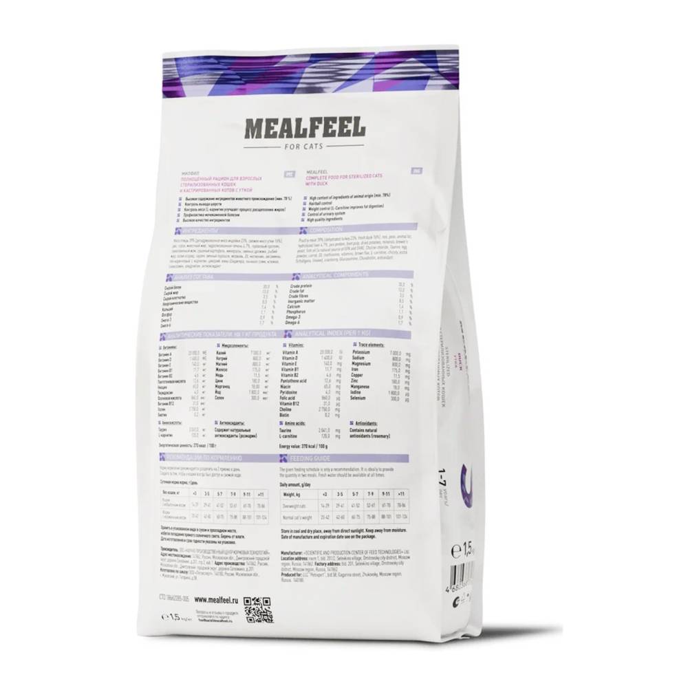 Mealfeel Sterilized - сухой рацион на основе свежего мяса птицы, разработанный специально для стерилизованных кошек и кастрированных котов. Учитывает потребности животных после стерилизации и содержит всё необходимое для поддержания здорового и активного образа жизни питомца.