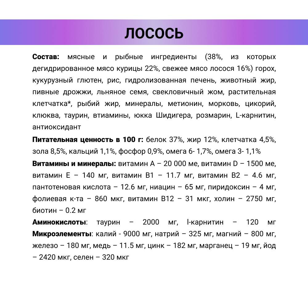 - 16% свежего лосося, что означает высокую вкусовую привлекательность продукта.