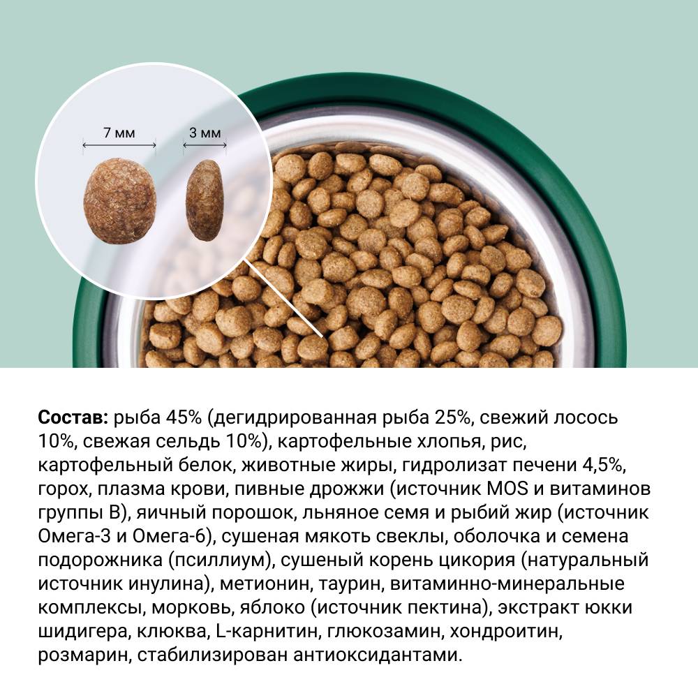 - Омега-3 жирные кислоты для крепкого иммунитета и здоровья кожи и шерсти;