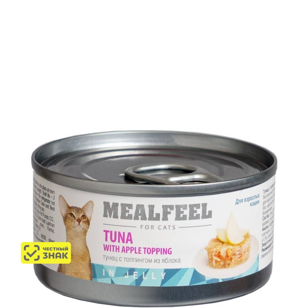 Mealfeel Влажный корм (консервы) для кошек, тунец с топпингом из яблока в желе, 85 гр.