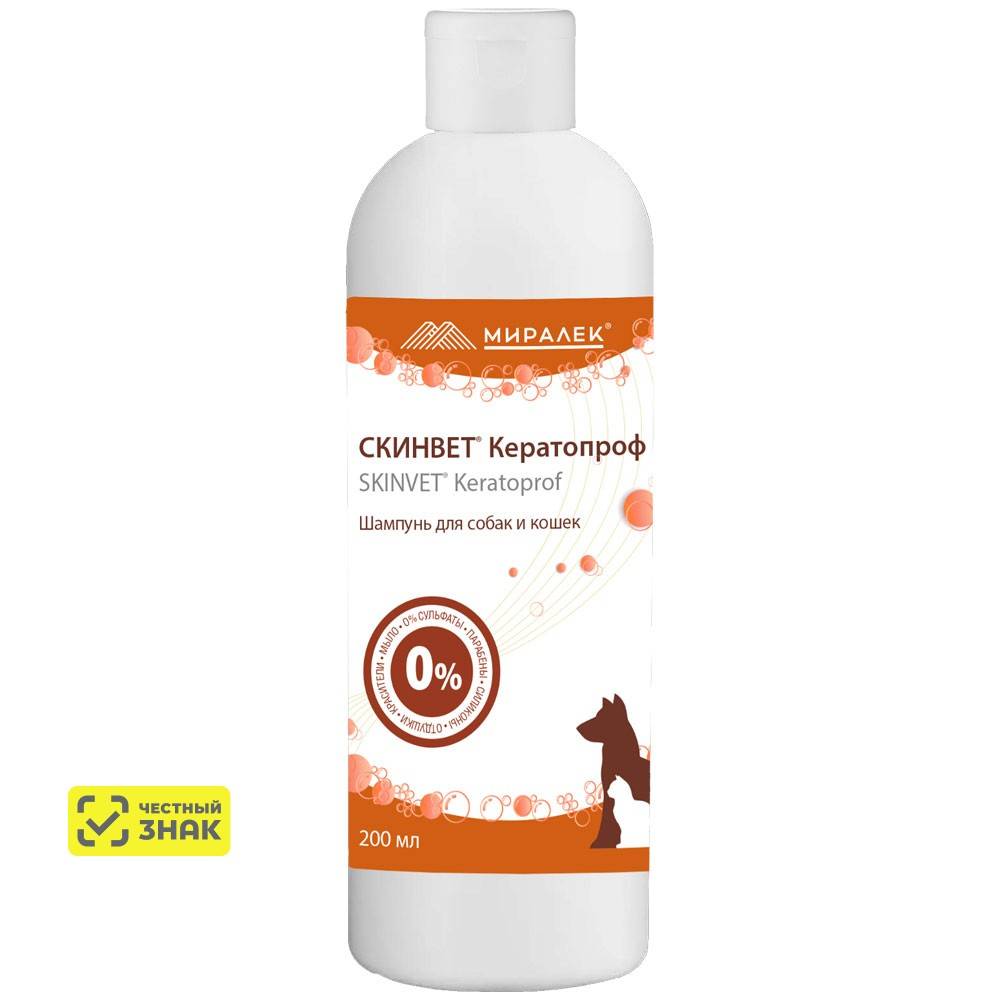 СКИНВЕТ® Кератопроф - шампунь для собак и кошек с кератолитическим действием, гипоаллергенный, предназначен для бережного очищения кожи и шерсти собак от загрязнений и восстановления естественной защиты и структуры кожи и шерсти при дерматитах различной этиологий.