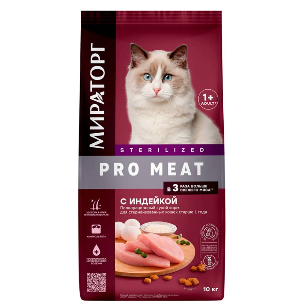 После кастрации и стерилизации предрасположенность кошек к появлению избыточной массы тела и мочекаменной болезни возрастает. С учетом этих особенностей был создан полнорационный корм PRO MEAT, который снижает вероятность появление лишнего веса и мочекаменной болезни.