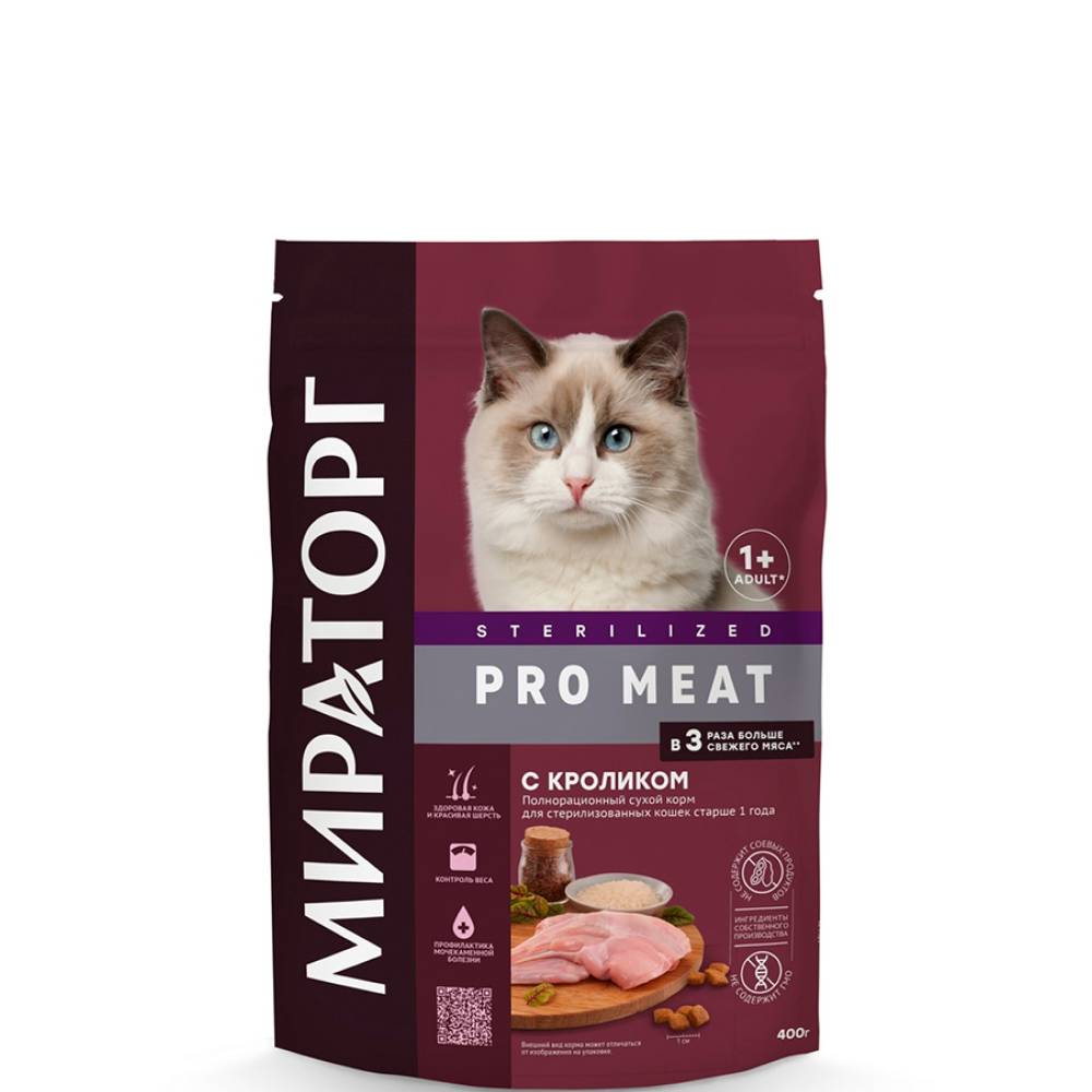 После стерилизации у кошек и кастрации у котов изменяется гормональный фон, что влияет на весь организм и способствует снижению активности и появлению избыточной массы тела у питомцев. Специальный корм PRO MEAT — источник легкоусвояемого белка со свежим мясом кролика и полезных натуральных ингредиентов. Рыбий жир и семена льна придадут блеск шерсти, а минеральный комплекс из кальция, фосфора и магния снизит риск возникновения мочекаменной болезни. Добавление L-карнитина, участвующего в жировом обмене, поможет питомцу сохранять прекрасную физическую форму.