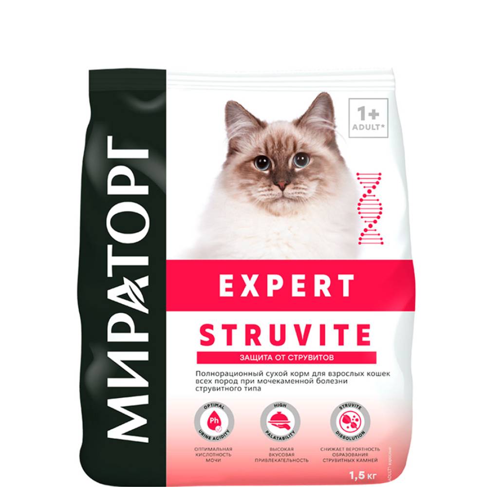 Мираторг Expert Struvite Сухой корм полнорационный для взрослых кошек всех пород при мочекаменной болезни струвитного типа, с курицей, 1,5 кг