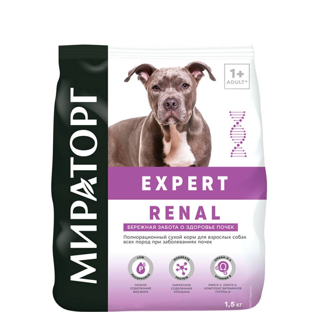 Мираторг Expert Renal Сухой корм полнорационный для взрослых собак всех пород Бережная забота о здоровье почек, с курицей, 1,5 кг