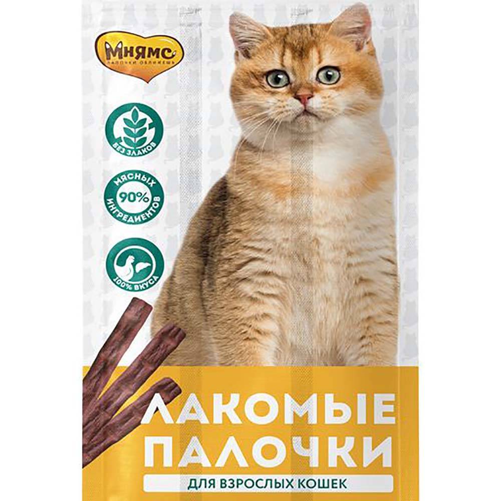 Мнямс лакомые палочки для кошек с цыпленком и печенью станут любимым угощением для вашего любимца.