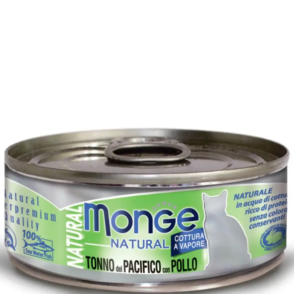 Monge консервы для кошек тихоокеанский тунец с курицей - дополнительное питание для взрослых кошек - консервы с кусочками тихоокеанского тунца и курицы.