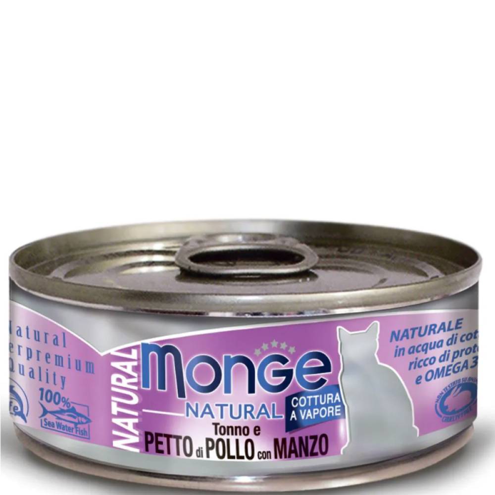 Monge консервы для кошек тунец с курицей и говядиной - дополнительное питание для взрослых кошек - консервы с кусочками тунца, курицы и говядины.