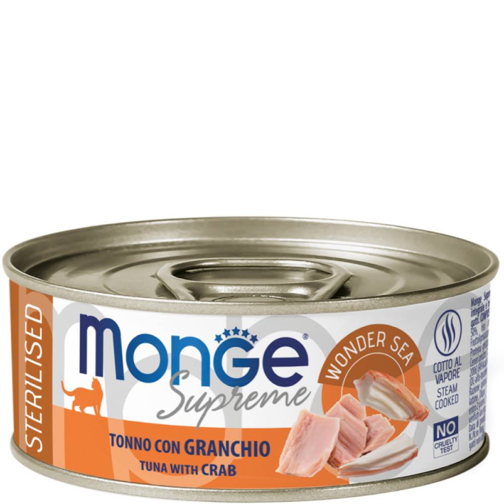 Влажный корм Monge Supreme Sterilised для стерилизованных кошек из тунца с крабом , консервы 80 гр.
