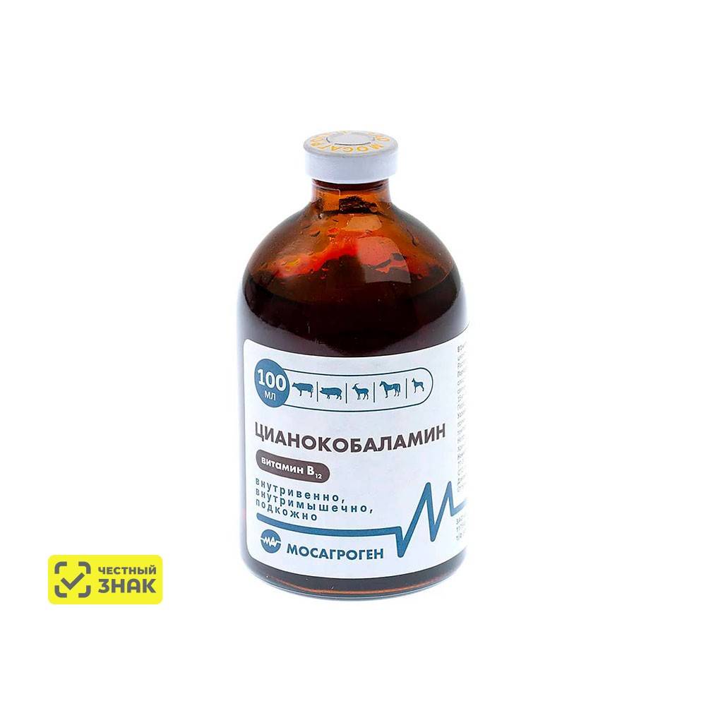 Витамин В12 улучшает кислотно-щелочное равновесие организма, повышает содержание общего белка в сыворотке крови, увеличивает количество гамма-глобулинов, стимулирует выработку антител. Препарат способствует росту и развитию животных. При внутримышечном введении цианокобаламин быстро поступает в кровь. Большая часть витамина в течение 24 часов выделяется из организма с мочой. При внутривенном введении период полувыведения цианокобаламина составляет от 20 до 50 минут.