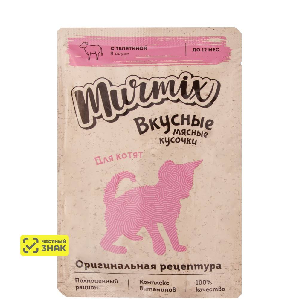 Murmix Влажный корм (пауч) для котят, кусочки с телятиной в соусе, 85 гр.