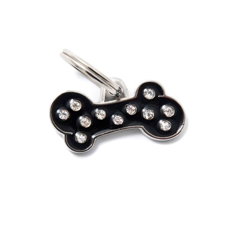 My Family Chic со Стразами Косточка жетон черный маленький из базовой коллекции итальянской фирмы My Family поможет вашему питомцу не потеряться. На жетон можно нанести гравировку с вашим телефоном или адресом, и в том случае, если животное сбежало вы сможете быть уверены, что с вами смогут связаться и вернуть беглеца домой. Красивый декоративный жетон крепится к ошейнику, шлейке, поводку, он не погнется, не сломается. Удобное и надежное крепление позволяет перестегивать жетон, если вы решили сменить ошейник или шлейку.