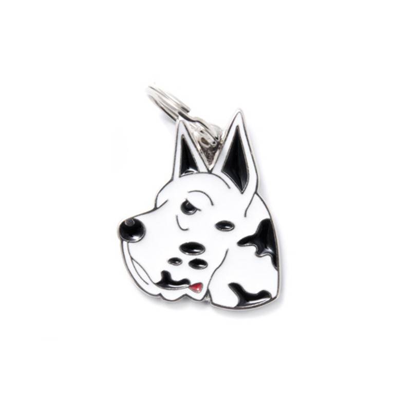 My Family Colors Немецкий дог "Арлекин" жетон цветной средний из базовой коллекции итальянской фирмы My Family поможет вашему питомцу не потеряться. На жетон можно нанести гравировку с вашим телефоном или адресом, и в том случае, если животное сбежало вы сможете быть уверены, что с вами смогут связаться и вернуть беглеца домой. Красивый декоративный жетон крепится к ошейнику, шлейке, поводку, он не погнется, не сломается. Удобное и надежное крепление позволяет перестегивать жетон, если вы решили сменить ошейник или шлейку.