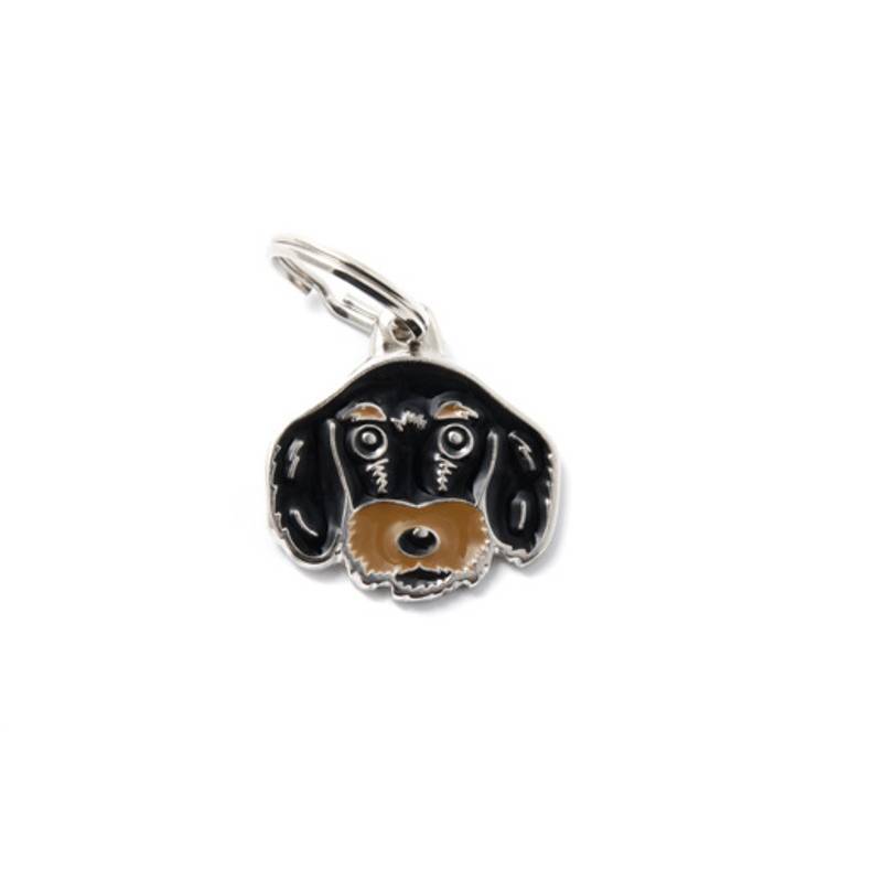 My Family Colors Жесткошерстная такса жетон цветной средний из базовой коллекции итальянской фирмы My Family поможет вашему питомцу не потеряться. На жетон можно нанести гравировку с вашим телефоном или адресом, и в том случае, если животное сбежало вы сможете быть уверены, что с вами смогут связаться и вернуть беглеца домой. Красивый декоративный жетон крепится к ошейнику, шлейке, поводку, он не погнется, не сломается. Удобное и надежное крепление позволяет перестегивать жетон, если вы решили сменить ошейник или шлейку.