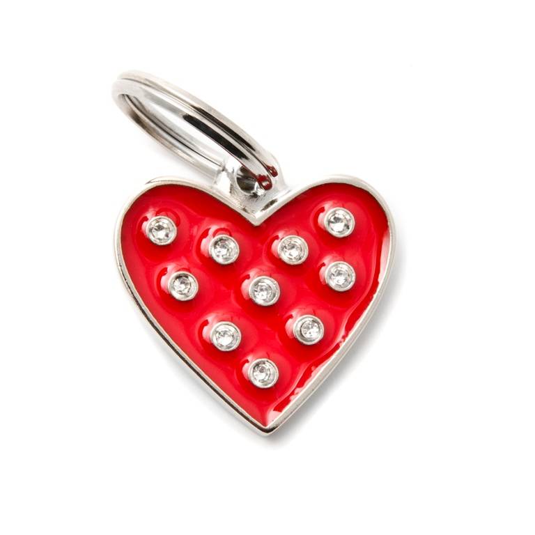 My Family Chic со стразами Сердце жетон красный средний из базовой коллекции итальянской фирмы My Family поможет вашему питомцу не потеряться. На жетон можно нанести гравировку с вашим телефоном или адресом, и в том случае, если животное сбежало вы сможете быть уверены, что с вами смогут связаться и вернуть беглеца домой. Красивый декоративный жетон крепится к ошейнику, шлейке, поводку, он не погнется, не сломается. Удобное и надежное крепление позволяет перестегивать жетон, если вы решили сменить ошейник или шлейку.
