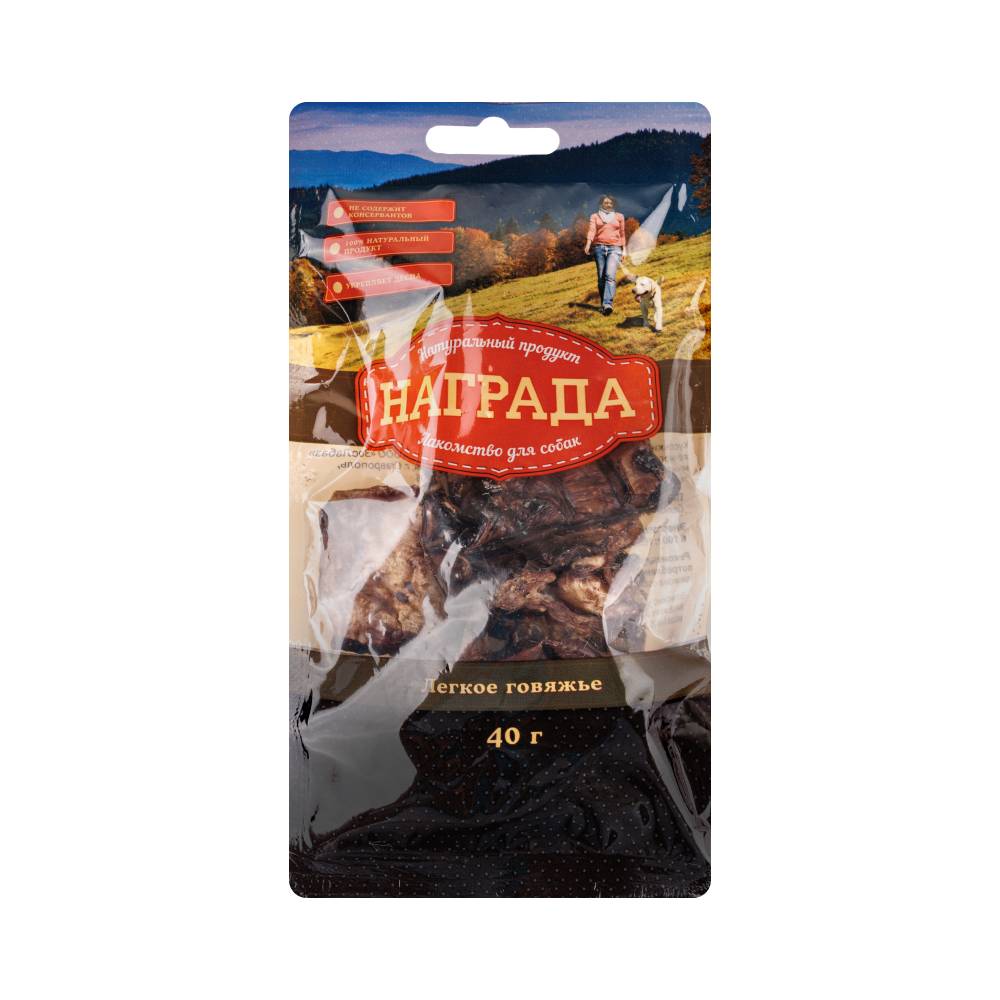 Мясное лакомство Награда Легкое говяжье подходит для всех пород собак любого возраста.