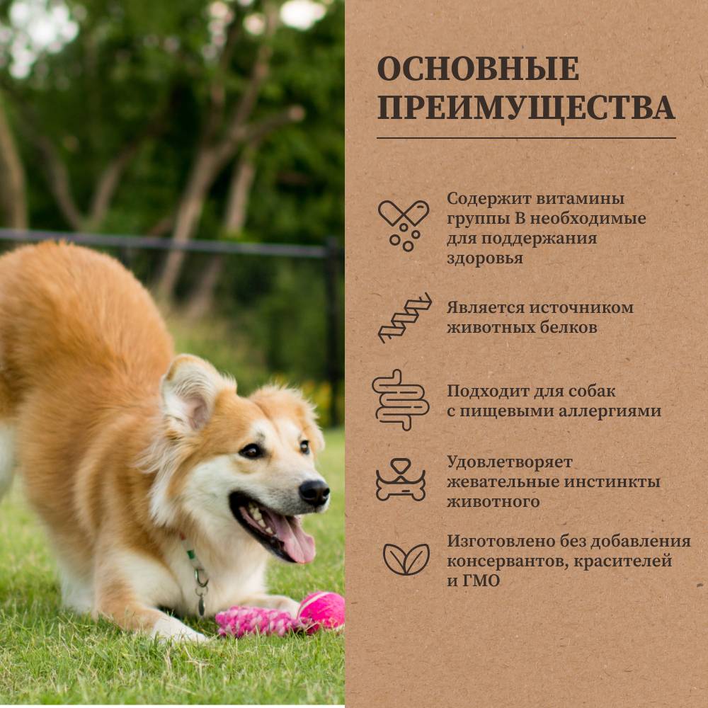 - Является источником животных белков, легко усваиваемых собачьим организмом и обеспечивающих энергию.
