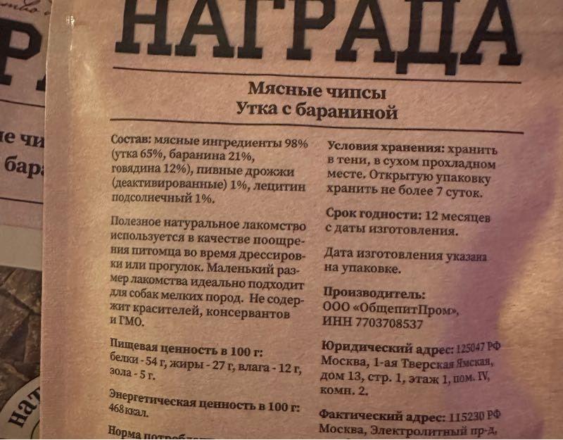 Полезное натуральное лакомство с уткой и бараниной используется в качестве поощрения питомца во время дрессировки или прогулок. Маленький размер лакомства идеально подходит для собак мелких пород.