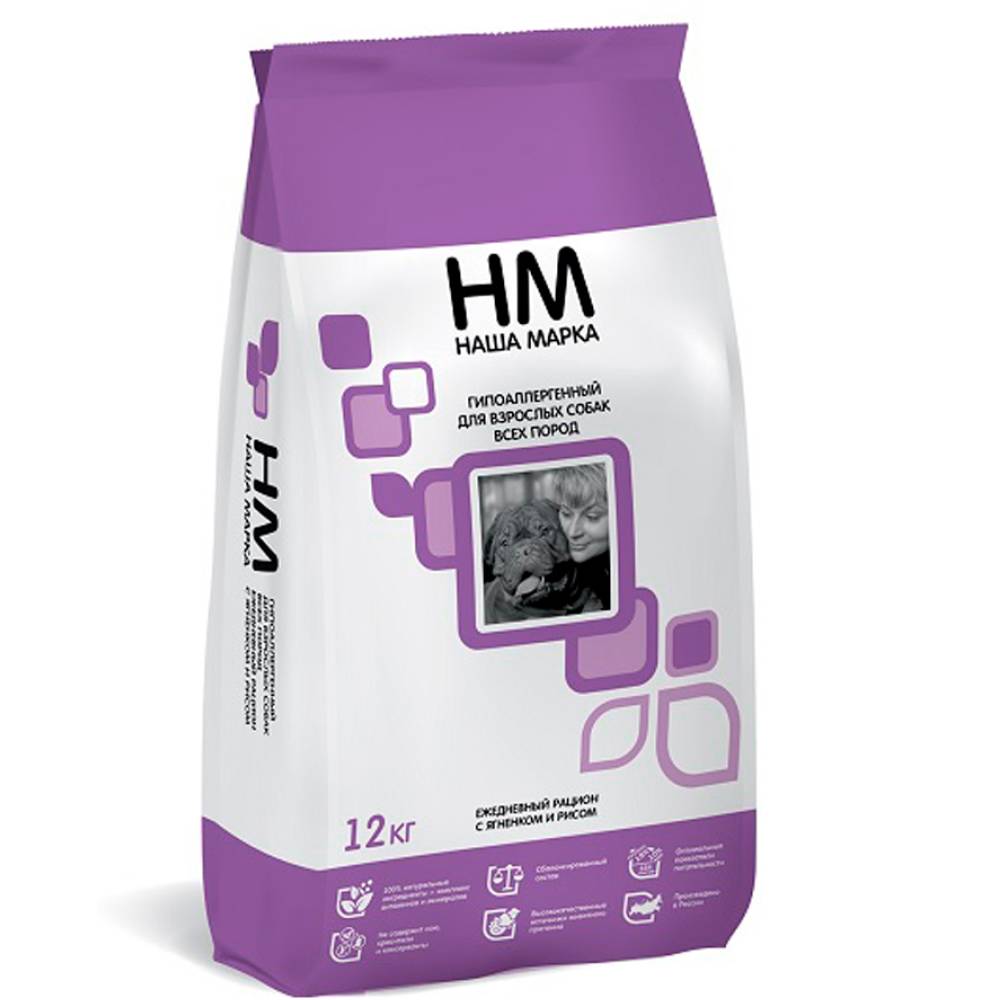 Наша Марка Сухой корм гипоаллергенный для взрослых собак всех пород, с ягненком и рисом, 12 кг