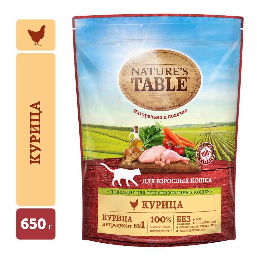 NATURE`S TABLE Сухой корм для кошек, со вкусом курицы, 650 гр.