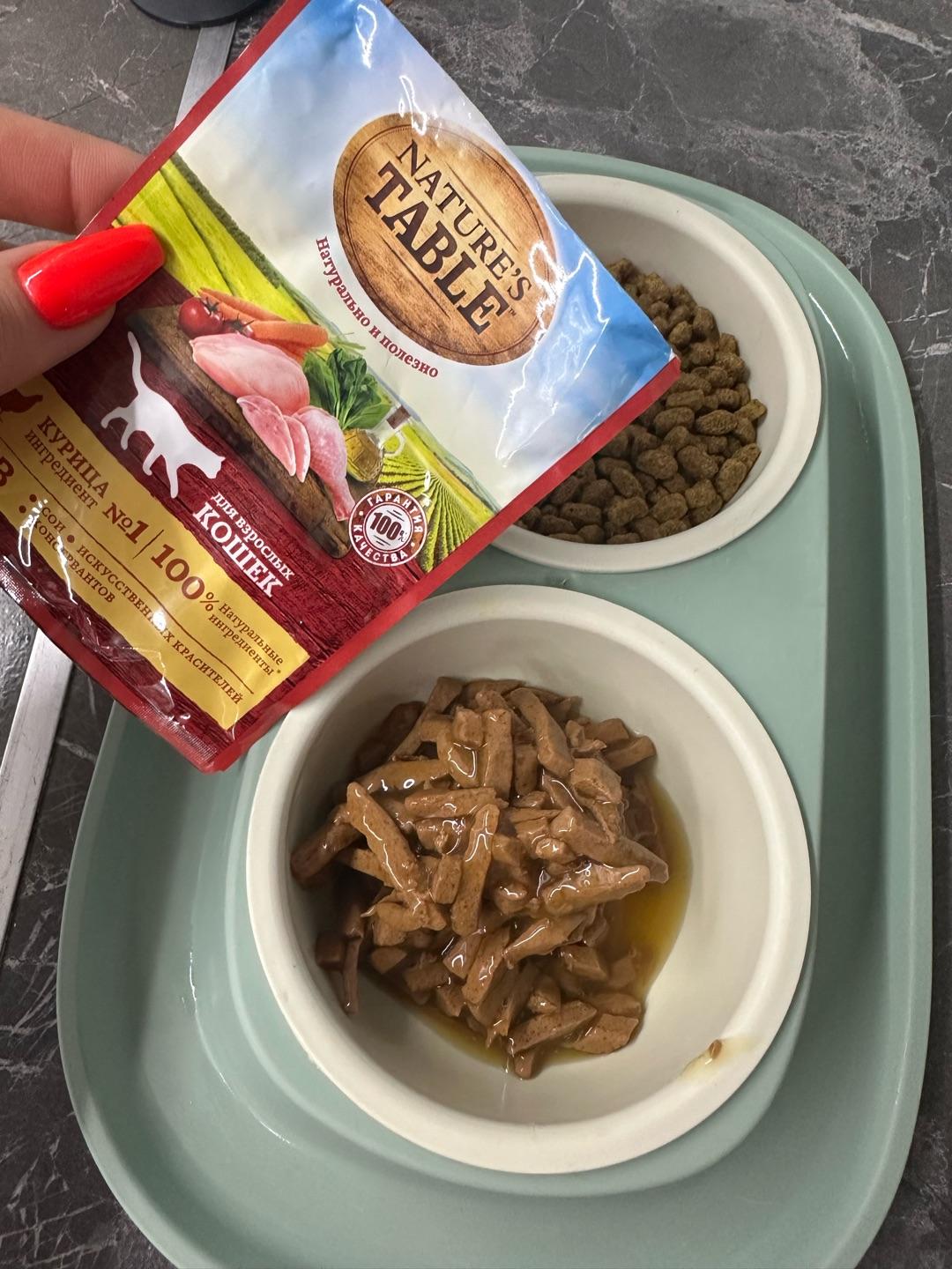 Попробовали сухой корм бренда Nature's Table. Что могу сказать, нас корм приятно удивил, котики ели его с большим удовольствием, а у нас они достаточно привередливы. Сухой корм чуть влажный, такой, каким и должен быть хороший корм. Однозначно рекомендую данный корм к покупке!кристина В.