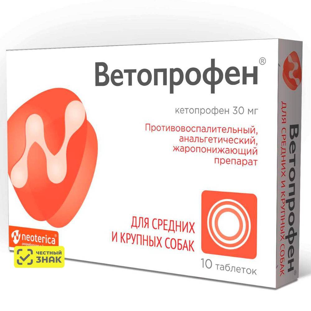 Ветопрофен – противовоспалительный, анальгетический и жаропонижающий препарат для кошек и собак на основе кетопрофена.