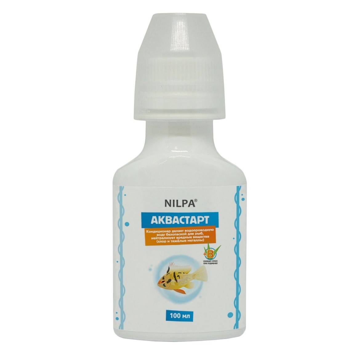 "Аквастарт", 100 мл - кондиционер делает водопроводную воду безопасной для рыб, нейтрализует вредные вещества.