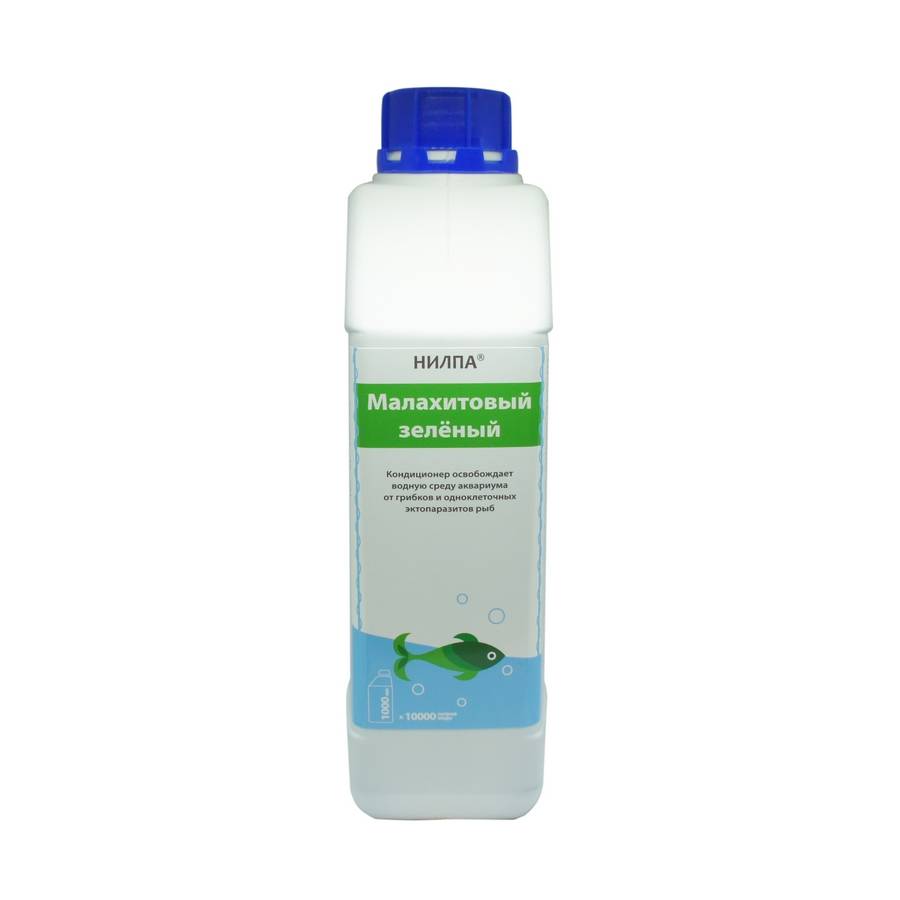 - Кондиционер НИЛПА «Малахитовый зеленый» можно использовать в отдельном сосуде при карантинировании рыб. Рекомендованная дозировка составляет 10 мл на 10 литров воды, экспозиция – 30-40 минут, воду следует аэрировать.