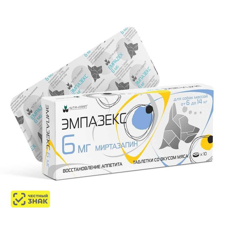 Эмпазекс — таблетки для приёма внутрь на основе миртазапина, назначаемые кошкам и собакам при поведенческих расстройствах.