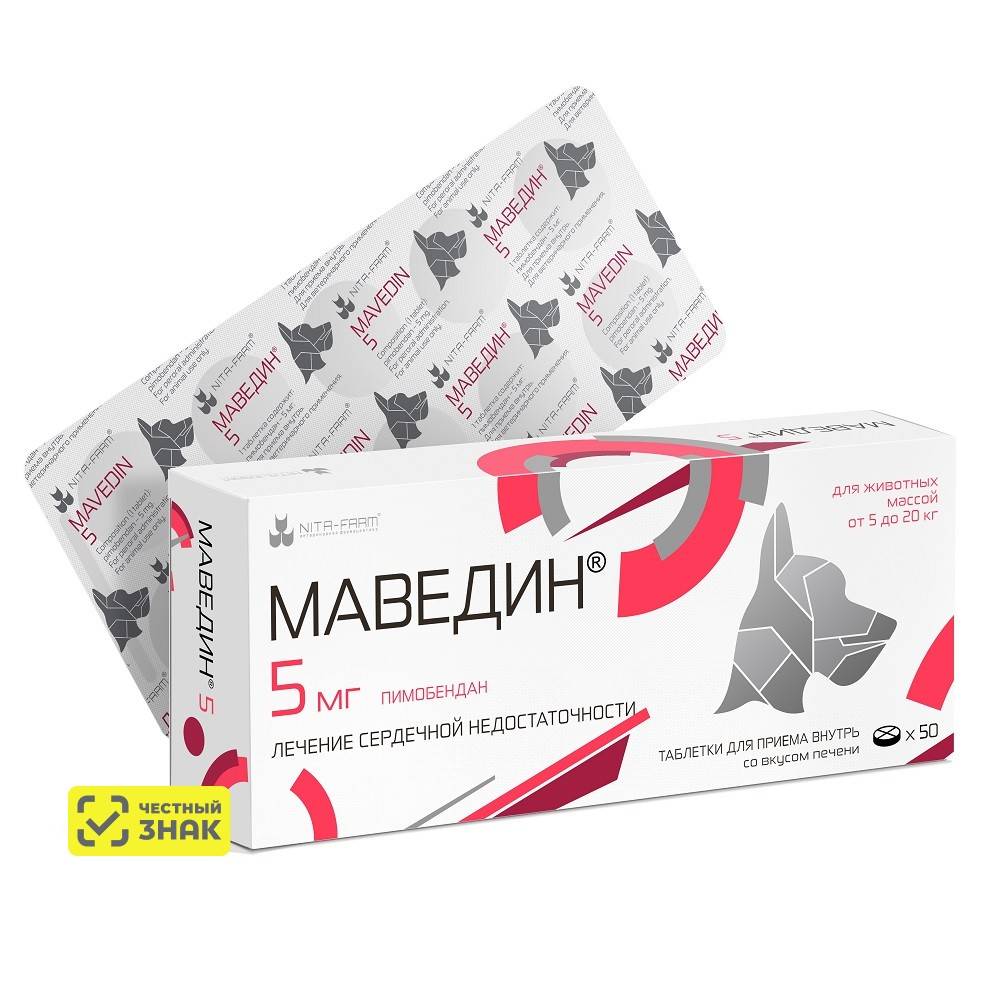 Маведин - лекарственный препарат для собак для применения при сердечной недостаточности, обладает положительным инотропным и вазодилатирующим (сосудорасширяющим) действием, повышает силу сердечных сокращений и уменьшает преднагрузку и постнагрузку на сердце.