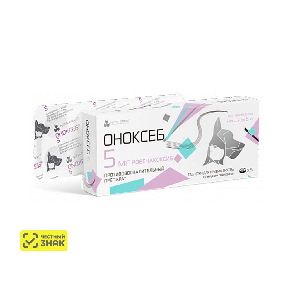 Nita-farm Оноксеб Нестероидный противовоспалительный препарат для кошек и собак 5 мг, 5 таблеток
