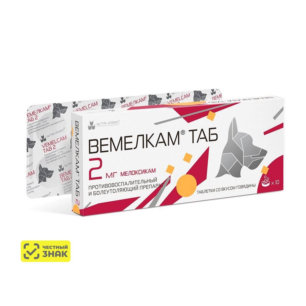 Nita-farm Вемелкам Таб Нестероидный противовоспалительный препарат для кошек и собак 2 мг, 10 таблеток