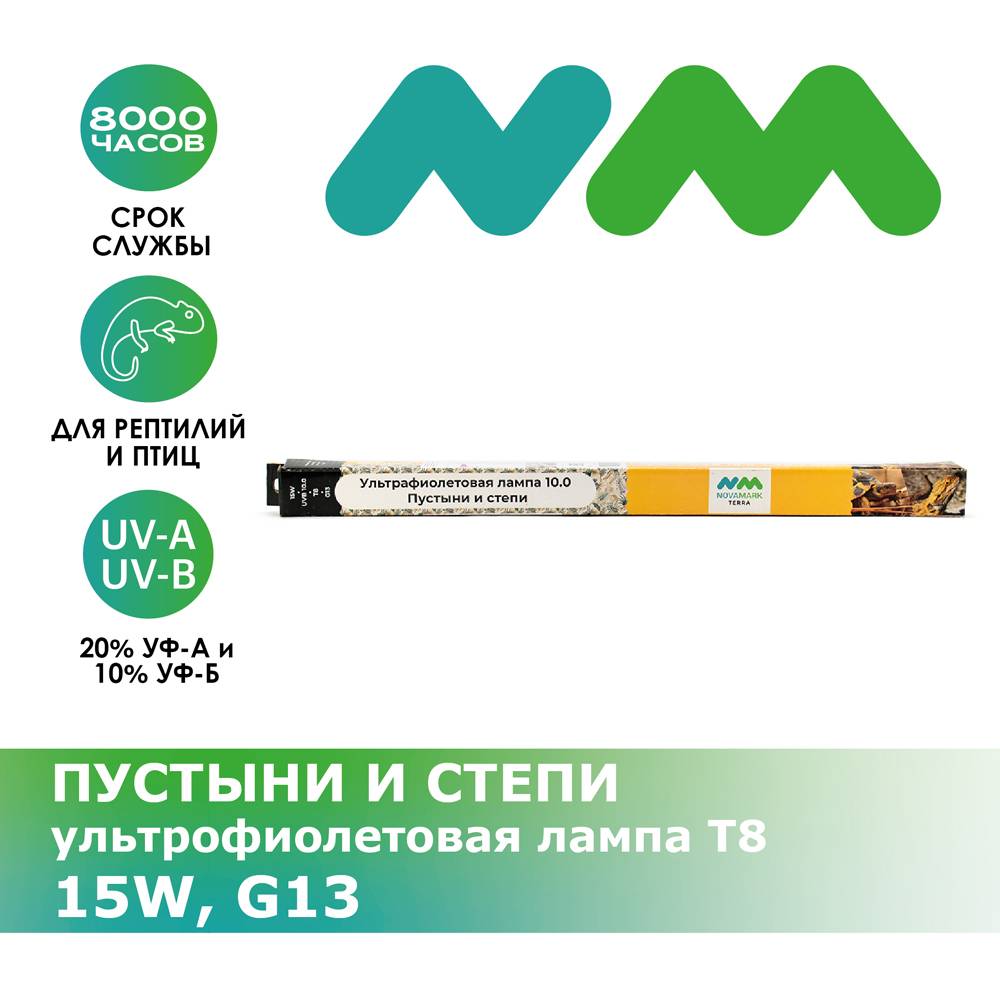 Ультрафиолетовые лампы NovaMark Terra 5.0 Тропический лес, стандарта Т8, идеально подходят для амфибий, рептилий и птиц, обитающих в тропических лесах и джунглях.
