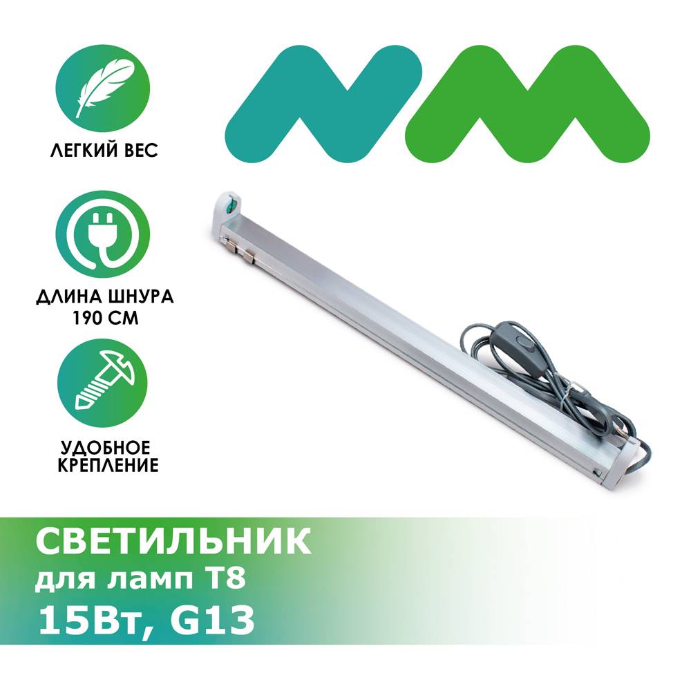 Светильник Т8 NovaMark Terra для ламп Т8 G13 15 Вт в комплекте со шнуром длинной 1.9 метра.