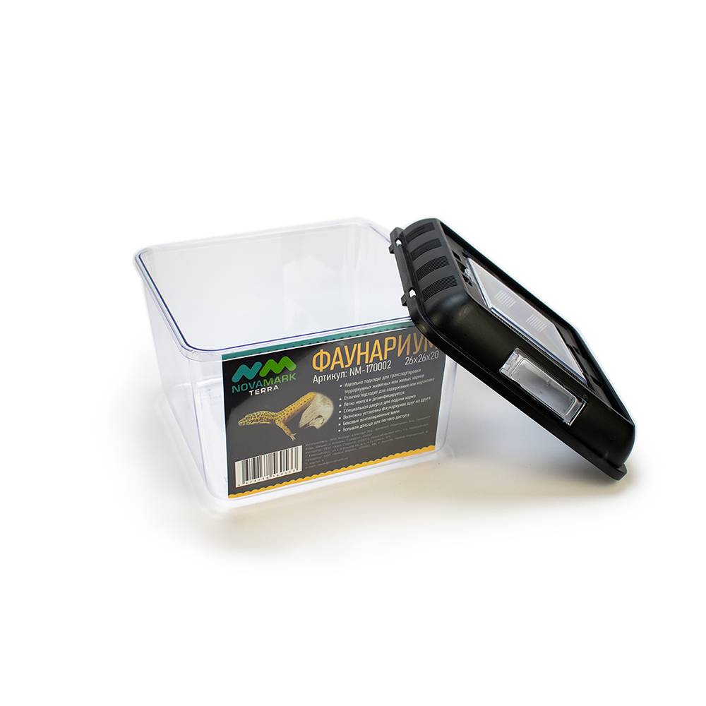 Размер: 20х20х17 см. Подойдет для постоянного содержания не крупных пауков, скорпионов, жуков. А также для перевозки средних ящериц и змей: хамелеонов, эублефаров, узорчатых полозов, молодых удавов, питонов и т.п.