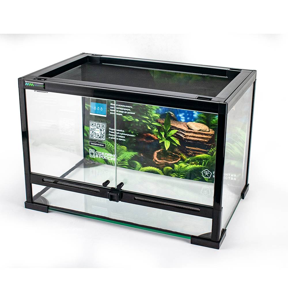 - Террариум оснащен двойной системой вентиляции спереди и сверху, для обеспечения хорошей циркуляции и предотвращения застоя воздуха, и также имеет передний высокий бортик, что дает возможность насыпать достаточный для животных слой грунта.