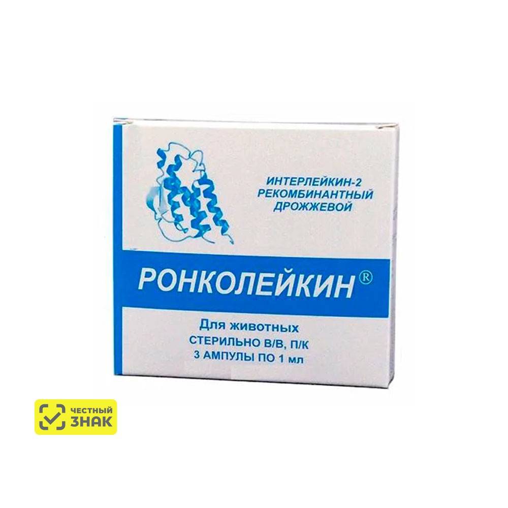 Ронколейкин 100 000 МЕ (3 штуки/упаковка) ООО БИОТЕХ применяется для домашних животных с кожными, онкологическими, респираторными, воспалительными заболеваниями.