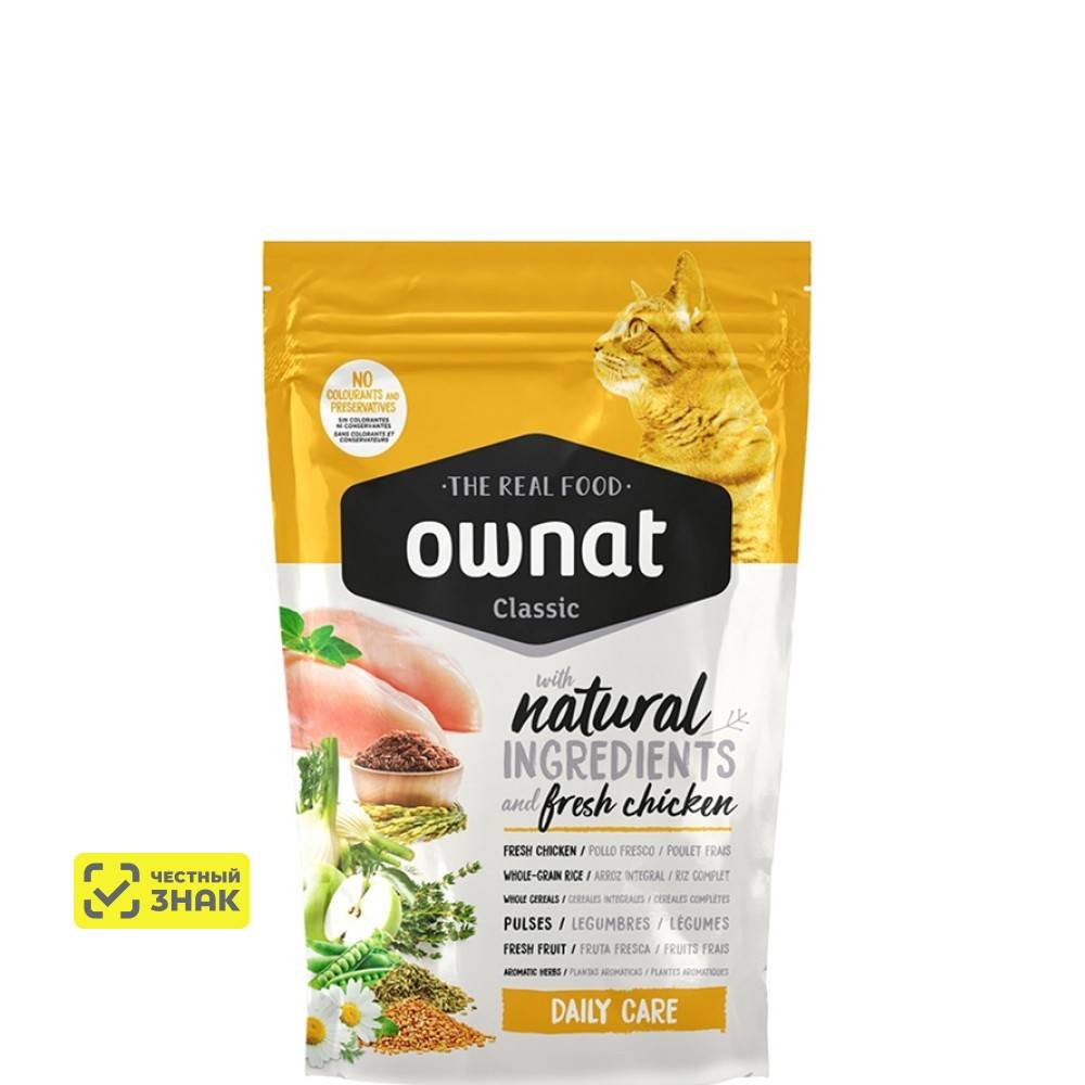 OWNAT CLASSIC DAILY CARE – это сбалансированный корм для кошек. Полнорационный и сбалансированный корм с превосходным вкусом, полученный за счет использования свежего мяса. Разработан для удовлетворения всех пищевых потребностей взрослых кошек с нормальным уровнем активности, независимо от их породы или размера.
