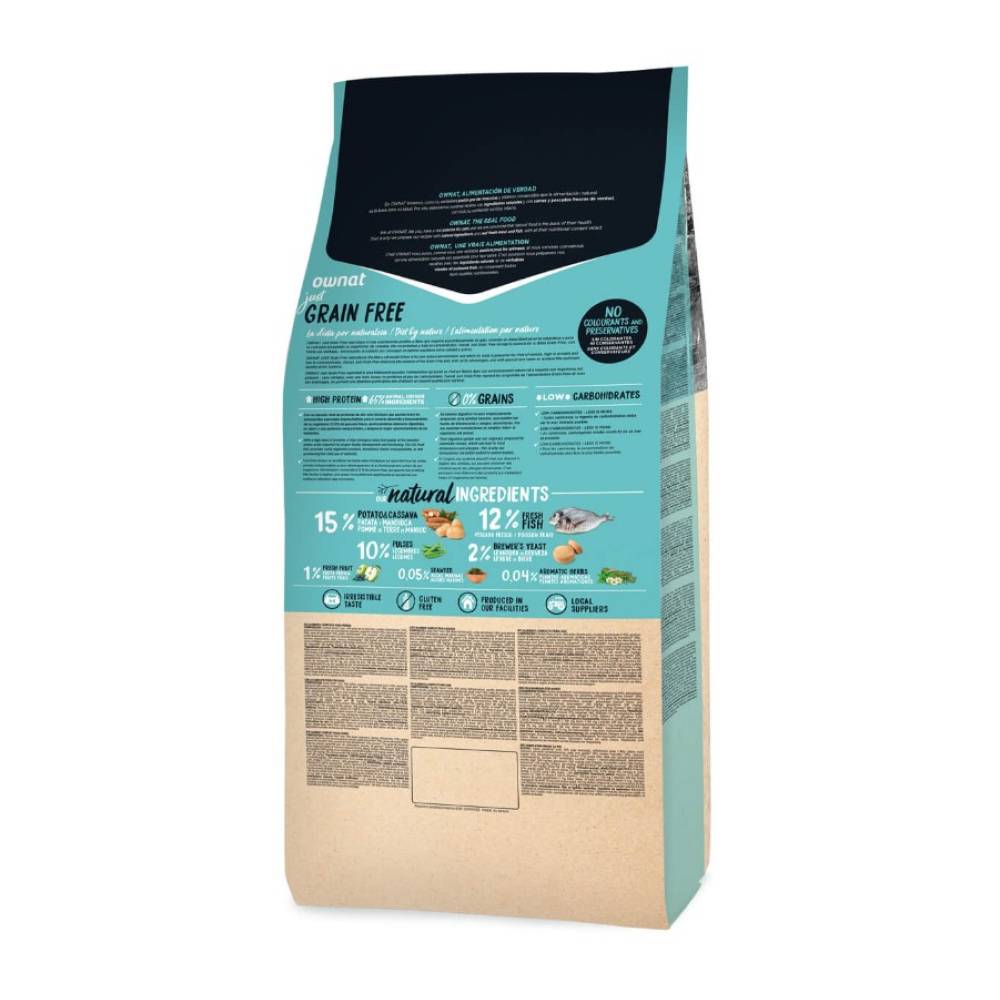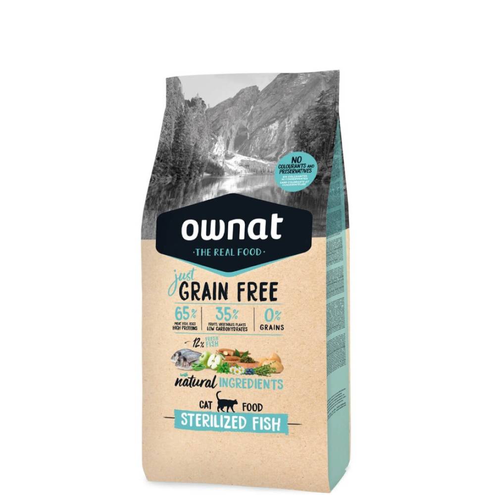 OWNAT JUST GRAIN FREE STERILIZED FISH - полнорационный сухой корм, состав которого разработан с учетом пищевых потребностей взрослых стерилизованных кошек и для поддержания идеального веса. Беззерновой корм с рыбой не содержит злаки и существенно снижает риск возникновения пищевой аллергии.