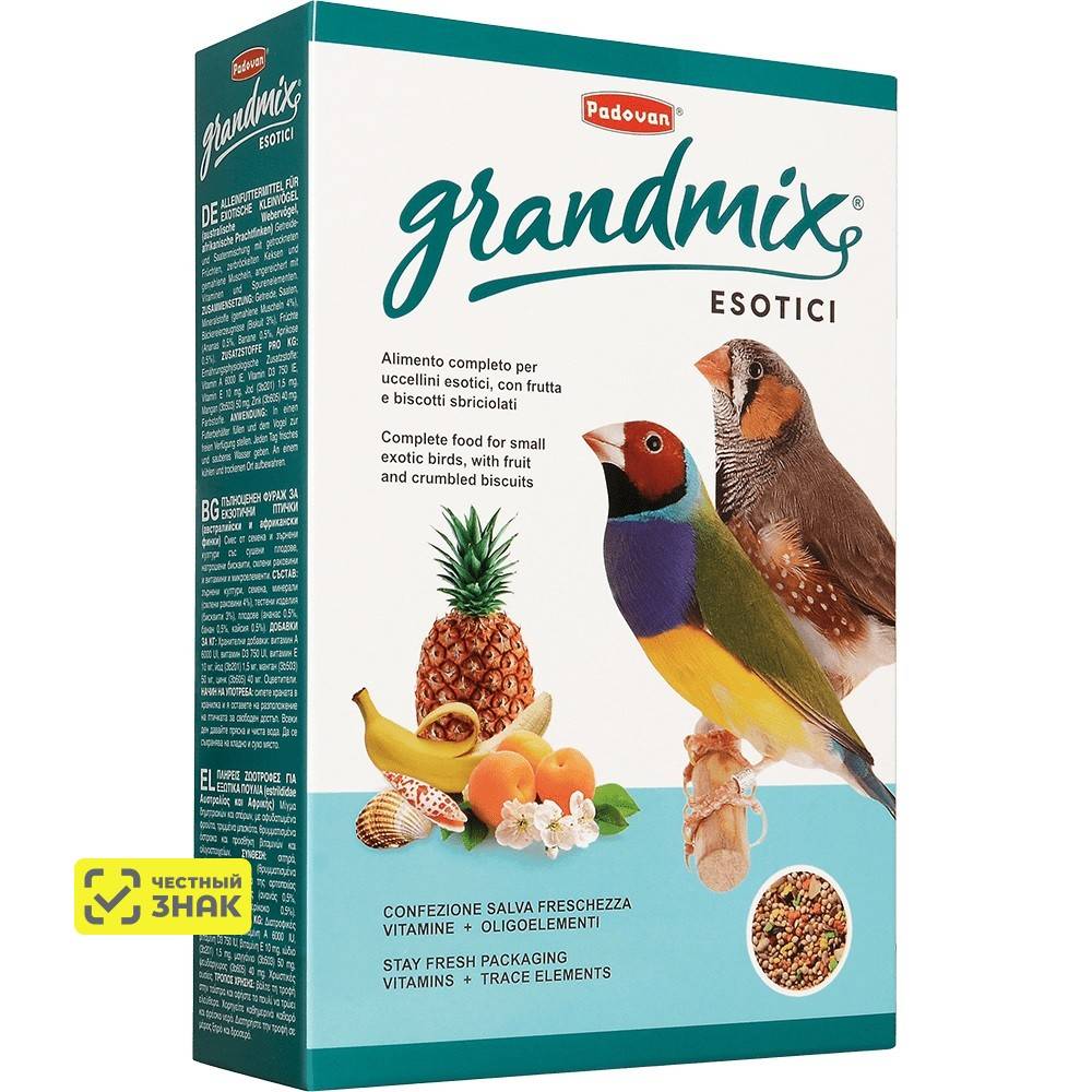 - Комплексный корм для экзотических птиц (амадины, австралийские, астрильдовые, африканские).