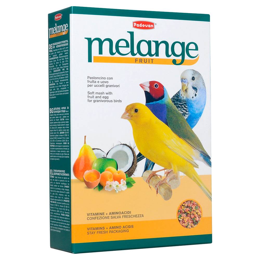 Padovan Корм Melange Fruit дополнительный для зерноядных птиц. Пюреобразный корм с фруктами и яйцом, который можно давать круглый год. Корм обогащен витаминами и антиоксидантами, подходит как полезное дополнение к обычному рациону птиц.