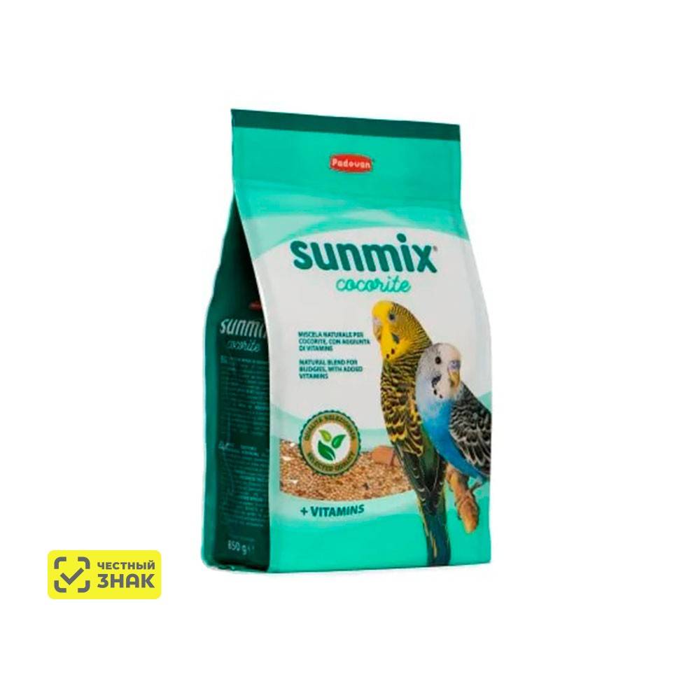 - Sunmix – это смесь из тщательно отобранных натуральных ингредиентов, обогащенная витаминами и бисквитом. Обеспечивает попугаев всеми необходимыми питательными веществами в течение всего года.