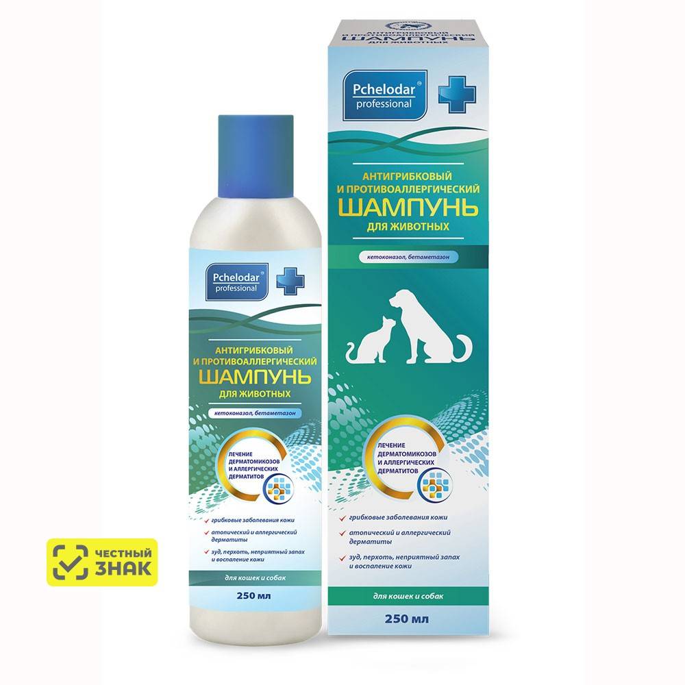 Антигрибковый и противоаллергический шампунь для животных применяют собакам и кошкам с лечебно-профилактической целью: