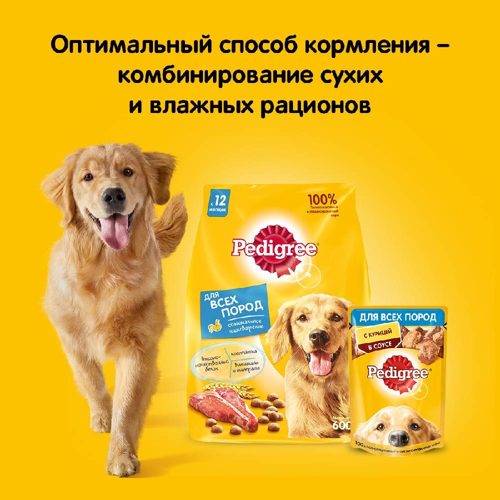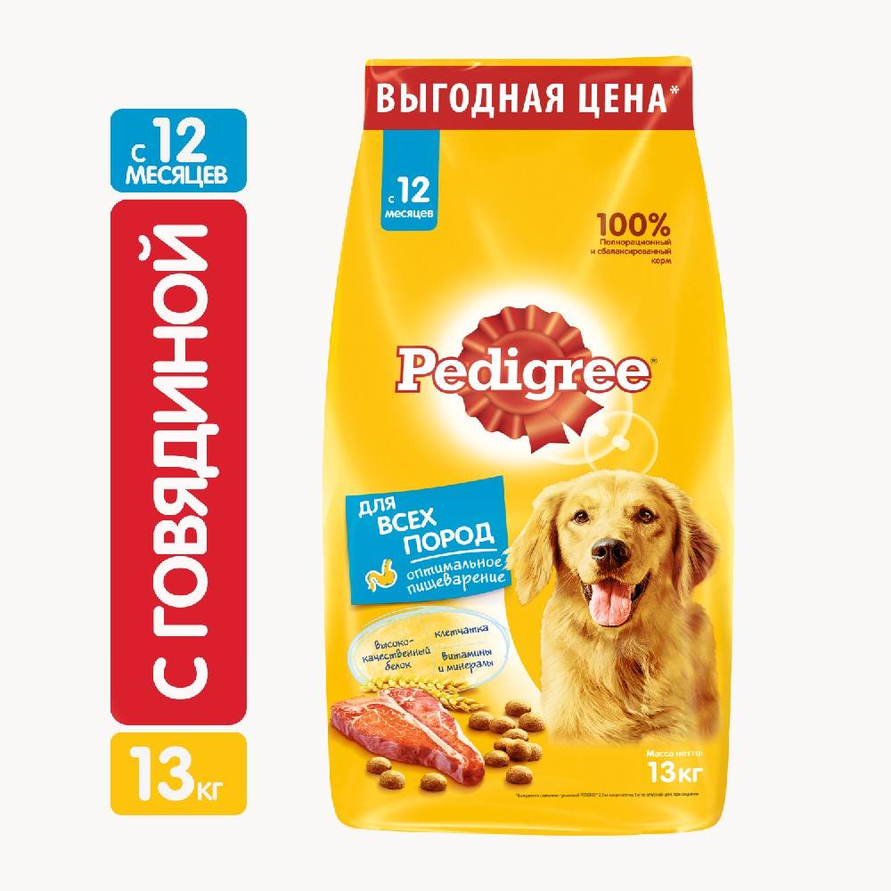 Сухой полнорационный корм PEDIGREE для взрослых собак всех пород, с говядиной.