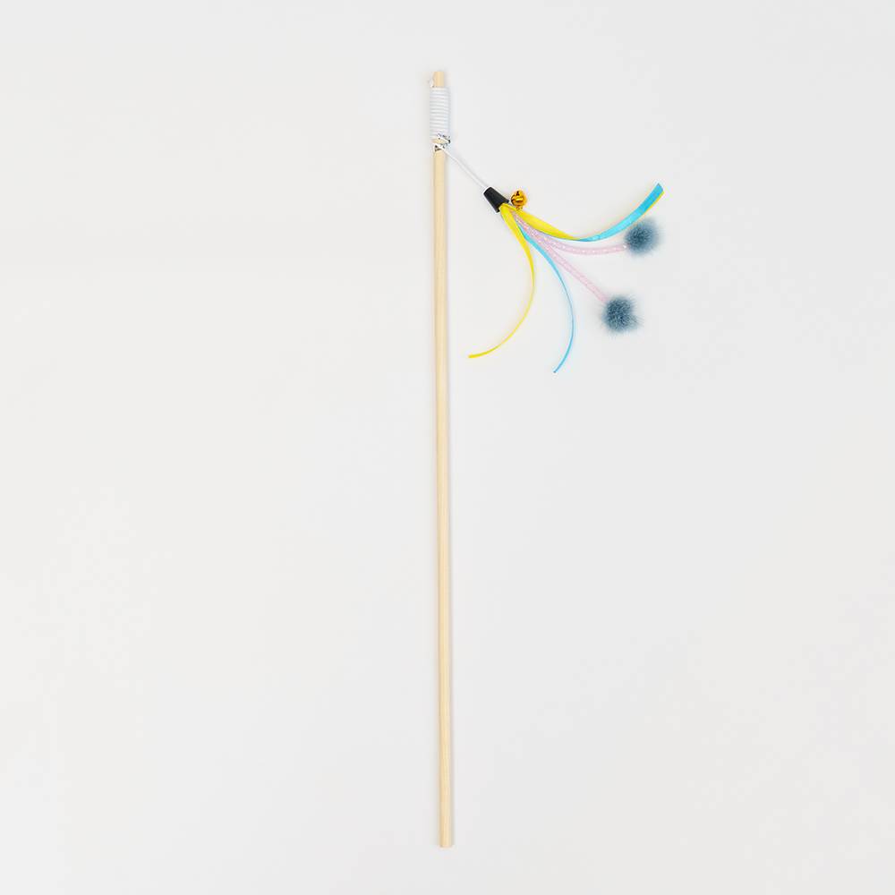 - На игрушке есть перья и бубенчики из меха для привлечения внимания питомца.