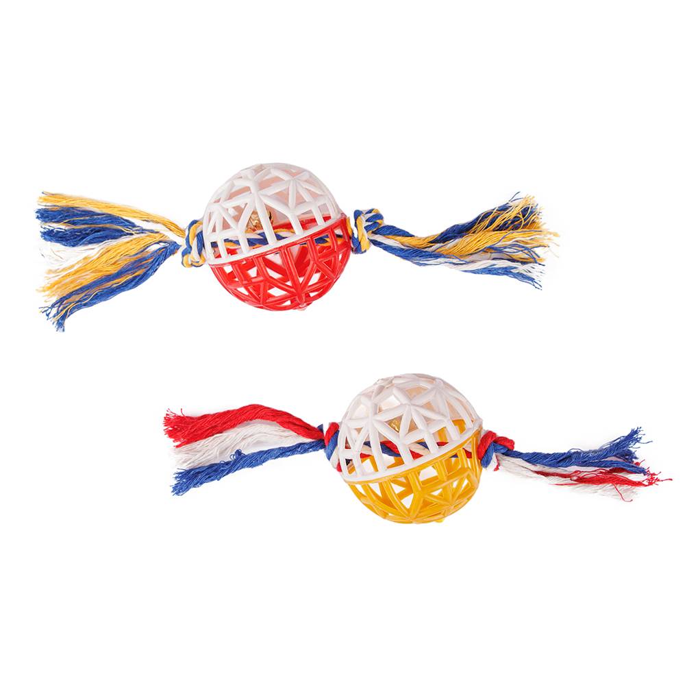 Игрушка для кошек мячик сетчатый с бубенчиком и верёвочными хвостиками изготовлена с заботой о вашем питомце и станет его любимой игрушкой.