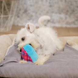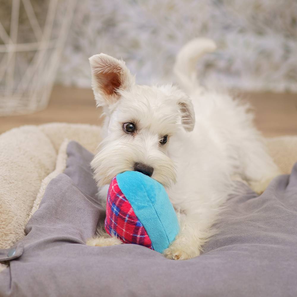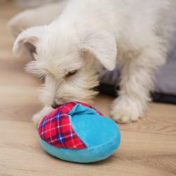 Подбирайте игрушку согласно размерам питомца. У собаки не должно быть возможности проглотить изделие целиком или какие-либо его части. Если любимец склонен к поеданию несъедобных предметов, давайте игрушку под присмотром.