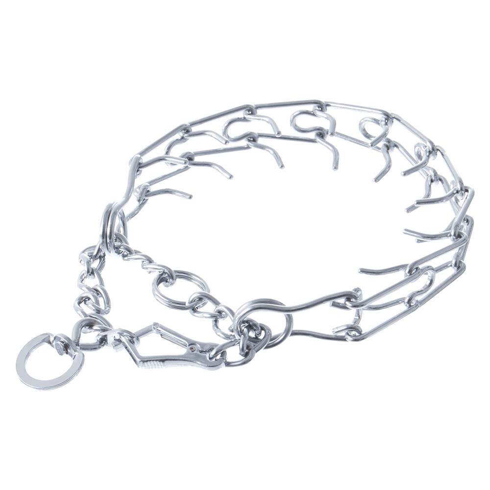 Ошейник строгий с карабином 3,8 ммx26 65 см производится торговой маркой ПетЛайн для домашних собак во время дрессировки. Изготавливается из прочного нержавеющего материала, который не поддается коррозии. Оригинальный дизайн способствует комфортному использованию. Без особых усилий фиксируется на шее питомца. Не использовать для постоянной носки.